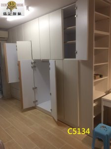 淺木色防火板 夾板衣櫃 連書架